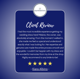 She has incredible attention to detail and a way of putting a bride’s stress at ease while helping her through the big task of picking out the perfect dress. Because she believes that shopping for a wedding dress should be one of the happiest memories of this special time! Our client adores her calm demeanor. She loves taking time to connect with the client.